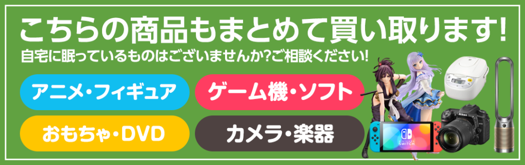 またアダルトグッズ以外の一般商品(アニメ・ゲーム・カメラ・家電・トレーディングカード・オーディオ機器 など)も買い取り強化中です♪ この機会にぜひ一度お気軽にご相談ください!